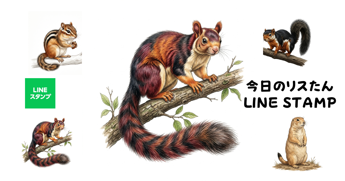 今回は、「今日のリスたんシリーズ」からインドオオリスのLINEスタンプをご紹介します。