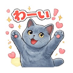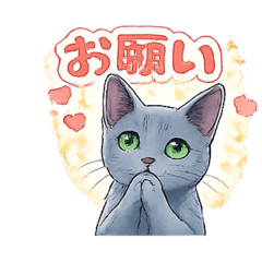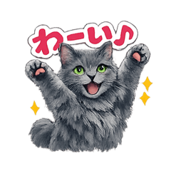気品あふれるロシアンブルーが、毎日使いやすい言葉で気持ちをかわいく伝えるスタンプです。