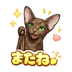 大きな耳と表情豊かなポーズがかわいい毎日使えるオリエンタルショートヘアの気持ちスタンプ集です。